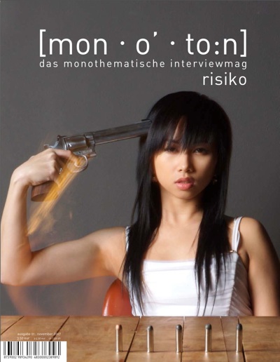 was genau gewinnt man und was genau setzt man aufs spiel? gehört zum risiko eine physikalische, existenzielle bedrohung oder ist jede handlung mit ungewissem ausgang schon ein risiko? in der kommenden ersten ausgabe von [mon : o’ : to:n] fragen wir u.a. einen investmentbanker, einen psychologen, illegale immigranten, eine professionelle pokerspielerin und einen kriegsreporter: “was ist risiko?” herausgekommen ist ein buntes und kontrastreiches bild aus ungewohnten blickwinkeln und interessanten lebensphilosophien. einen auszug der faszinierenden und vielfältigen antworten halten sie mit dieser dummyversion von [mon : o’ : to:n] in ihren händen.